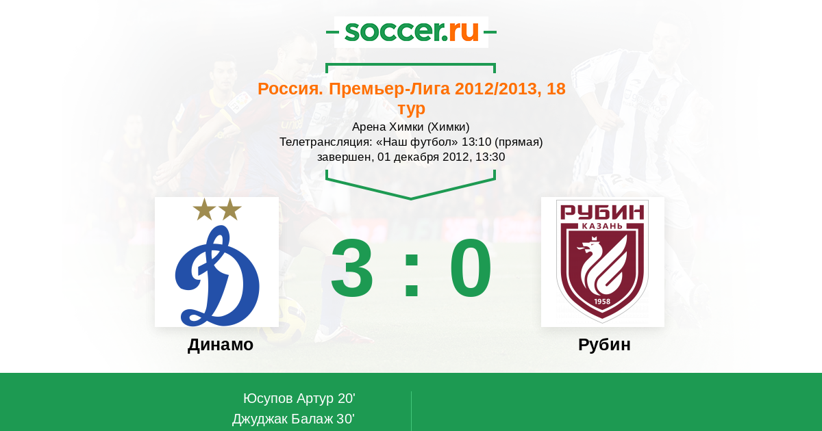 Протокол матча Динамо против Рубин