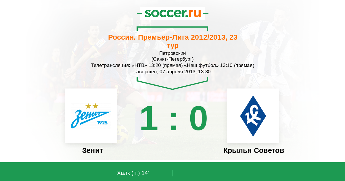 Телетрансляция: «НТВ» 13:20 (прямая) «Наш футбол» 13:10 (прямая)