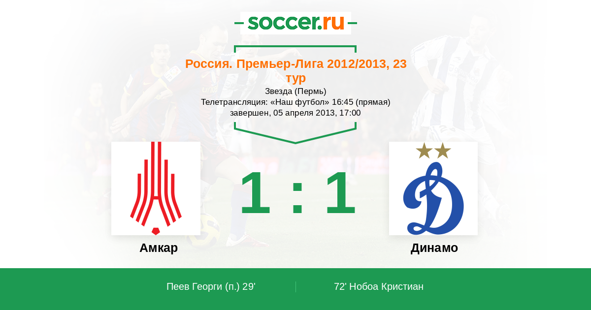 Протокол матча Амкар против Динамо