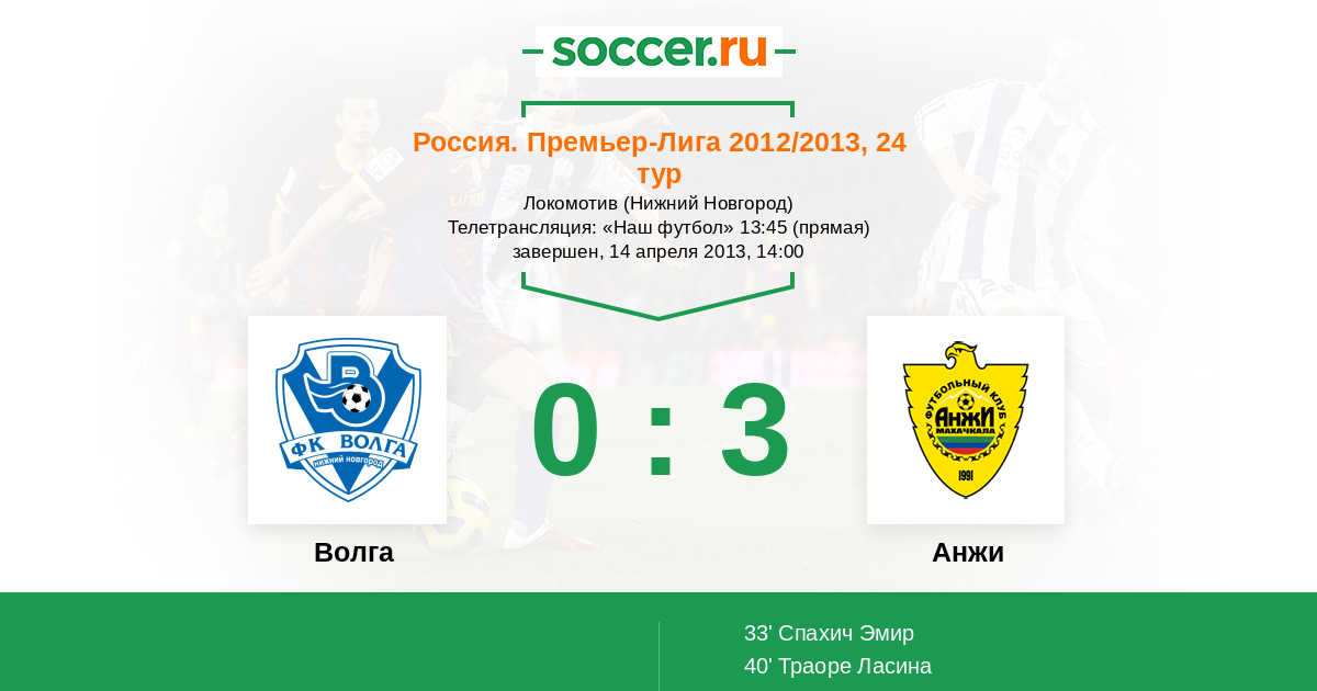 Протокол матча Волга против Анжи