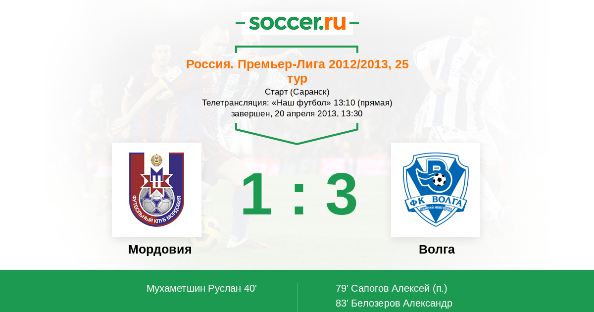 Протокол матча Мордовия против Волга