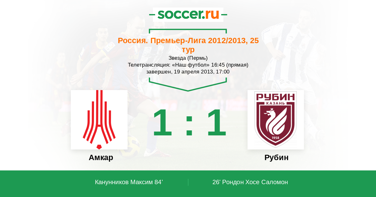 Протокол матча Амкар против Рубин