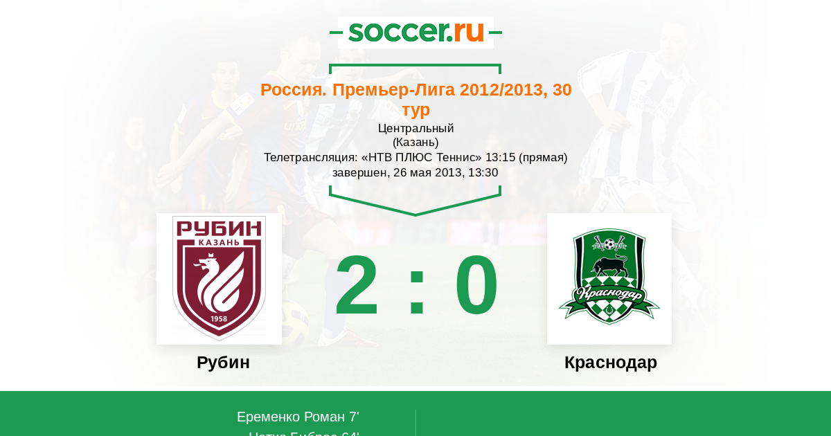 Протокол матча Рубин против Краснодар