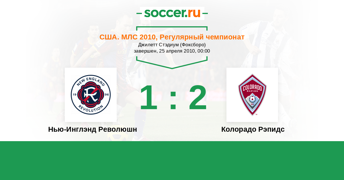 США. МЛС 03.05.2012 Нью-Инглэнд Революшн Логотип футбольный клуб Нью-Инглэнд Революшн (Фоксборо) 2:1 Логотип футбольный клуб Колорадо Рэпидс (Денвер) Колорадо Рэпидс