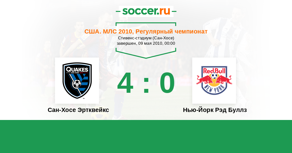 США. МЛС 29.08.2010 Нью-Йорк Рэд Буллз Логотип футбольный клуб Нью-Йорк Рэд Буллз 2:0 Логотип футбольный клуб Сан-Хосе Эртквейкс Сан-Хосе Эртквейкс