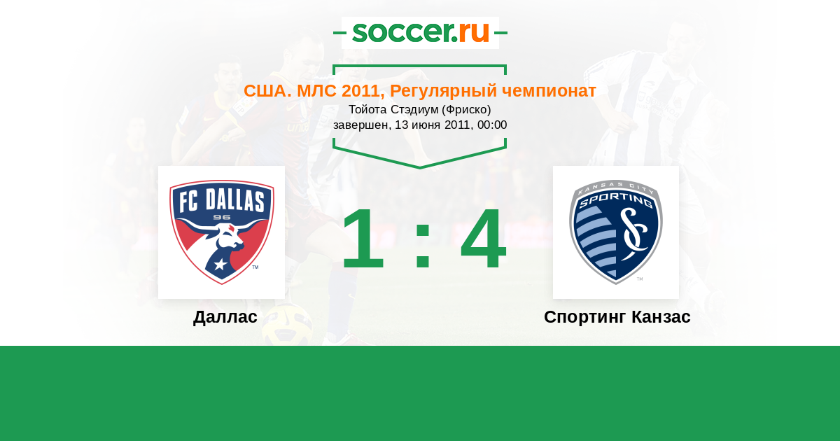 США. МЛС 04.07.2010 Даллас Логотип футбольный клуб Даллас 1:0 Логотип футбольный клуб Спортинг Канзас (Канзас-Сити) Спортинг Канзас