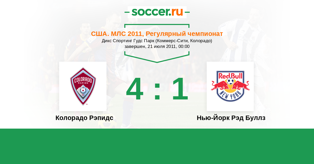 США. МЛС 05.07.2010 Колорадо Рэпидс Логотип футбольный клуб Колорадо Рэпидс (Денвер) 1:1 Логотип футбольный клуб Нью-Йорк Рэд Буллз Нью-Йорк Рэд Буллз