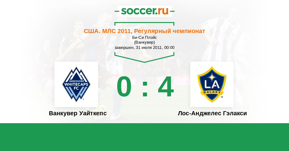 США. МЛС 19.07.2012 Ванкувер Уайткепс Логотип футбольный клуб Ванкувер Уайткепс 2:2 Логотип футбольный клуб Лос-Анджелес Гэлакси Лос-Анджелес Гэлакси