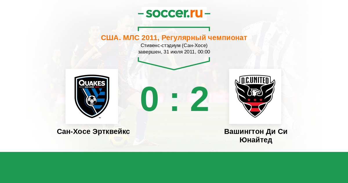 США. МЛС 12.06.2011 Вашингтон Ди Си Юнайтед Логотип футбольный клуб Вашингтон Ди Си Юнайтед 2:4 Логотип футбольный клуб Сан-Хосе Эртквейкс Сан-Хосе Эртквейкс