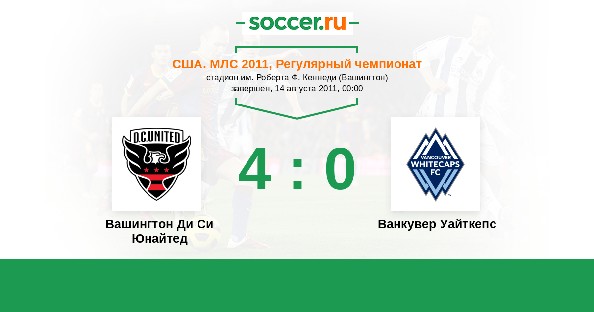 История матча Вашингтон Ди Си Юнайтед против Ванкувер Уайткепс