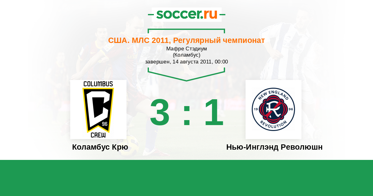 США. МЛС 16.10.2011 Нью-Инглэнд Революшн Логотип футбольный клуб Нью-Инглэнд Революшн (Фоксборо) 0:3 Логотип футбольный клуб Коламбус Крю Коламбус Крю