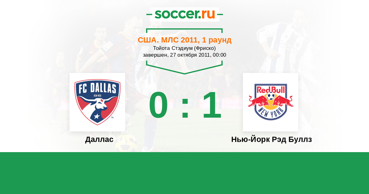 США. МЛС 18.09.2011 Даллас Логотип футбольный клуб Даллас 0:1 Логотип футбольный клуб Нью-Йорк Рэд Буллз Нью-Йорк Рэд Буллз