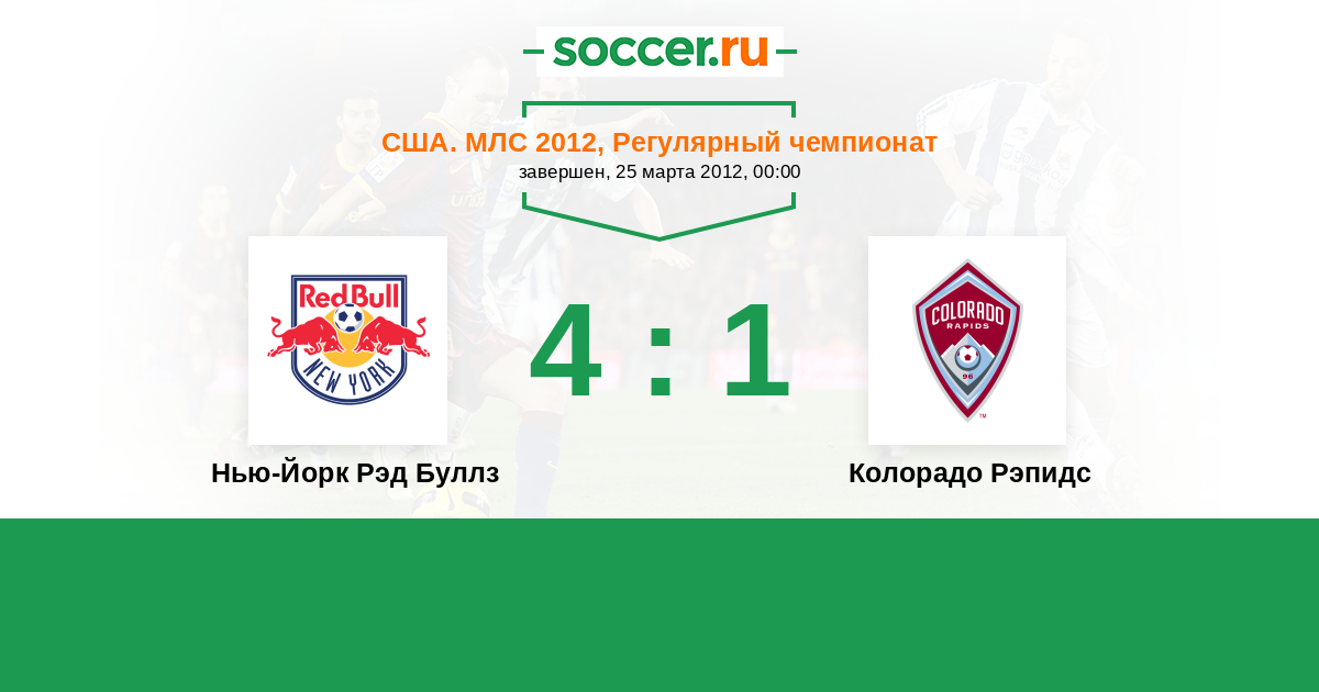 США. МЛС 21.07.2011 Колорадо Рэпидс Логотип футбольный клуб Колорадо Рэпидс (Денвер) 4:1 Логотип футбольный клуб Нью-Йорк Рэд Буллз Нью-Йорк Рэд Буллз