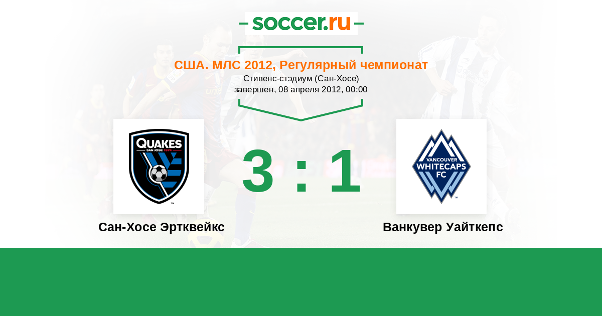 США. МЛС 06.05.2012 Ванкувер Уайткепс Логотип футбольный клуб Ванкувер Уайткепс 2:1 Логотип футбольный клуб Сан-Хосе Эртквейкс Сан-Хосе Эртквейкс