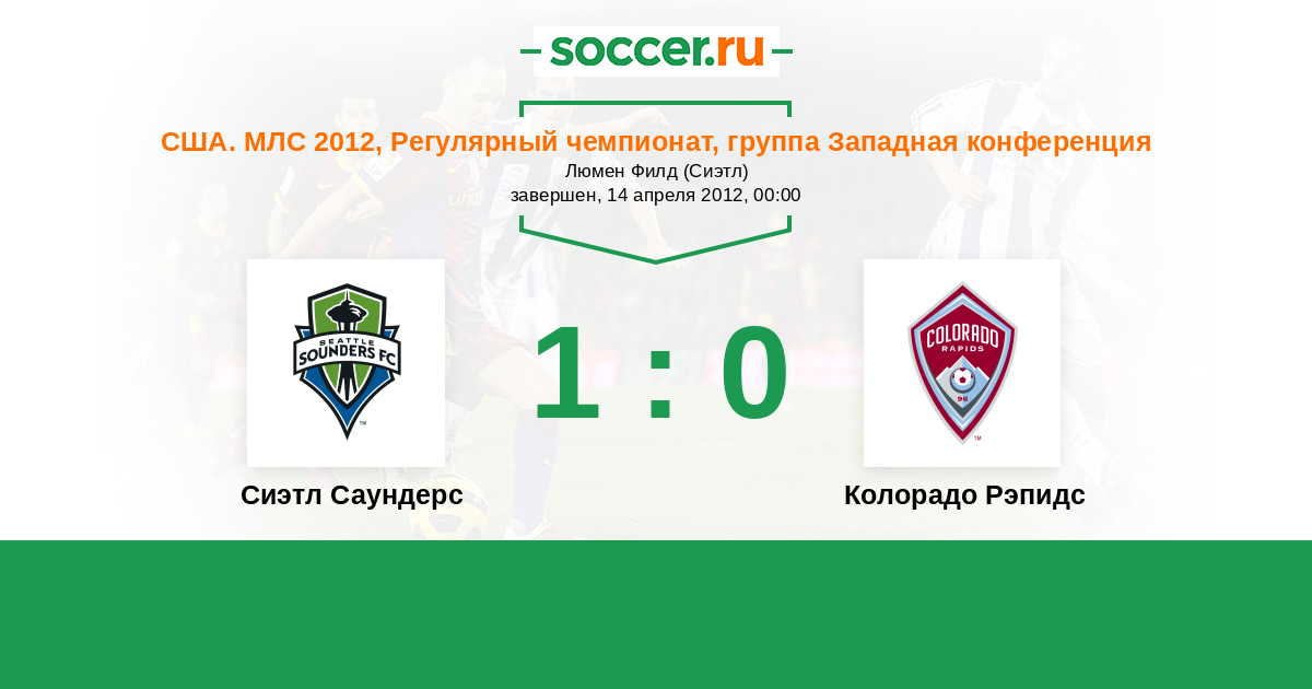 США. МЛС 21.04.2013 Колорадо Рэпидс Логотип футбольный клуб Колорадо Рэпидс (Денвер) 0:1 Логотип футбольный клуб Сиэтл Саундерс Сиэтл Саундерс