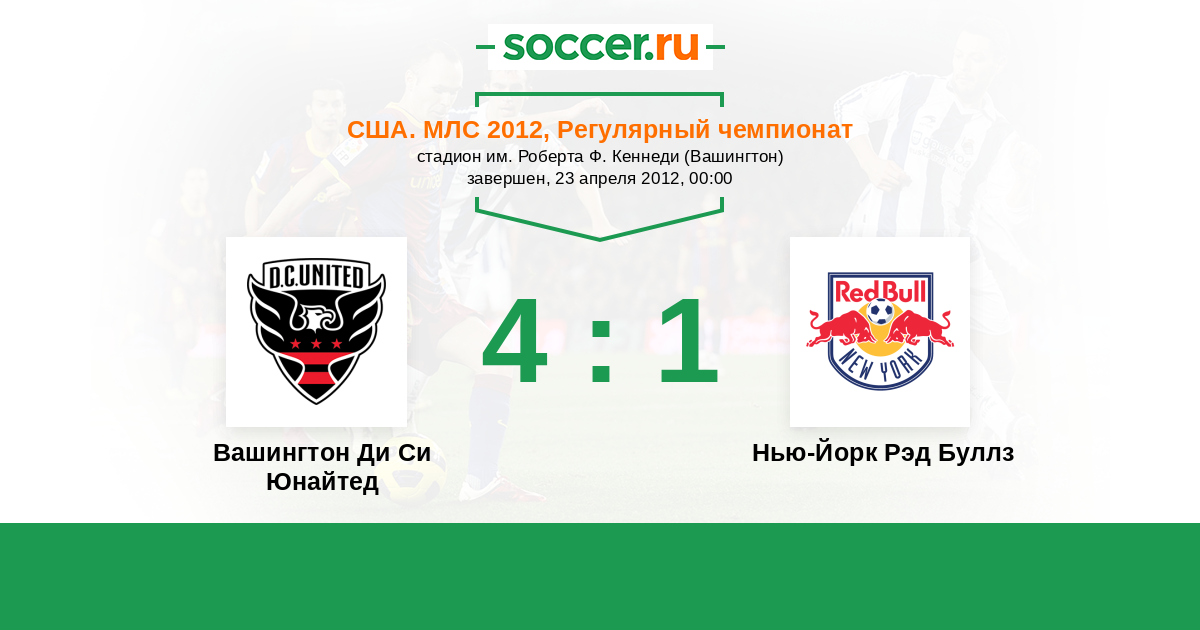 США. МЛС 22.04.2011 Вашингтон Ди Си Юнайтед Логотип футбольный клуб Вашингтон Ди Си Юнайтед 0:4 Логотип футбольный клуб Нью-Йорк Рэд Буллз Нью-Йорк Рэд Буллз