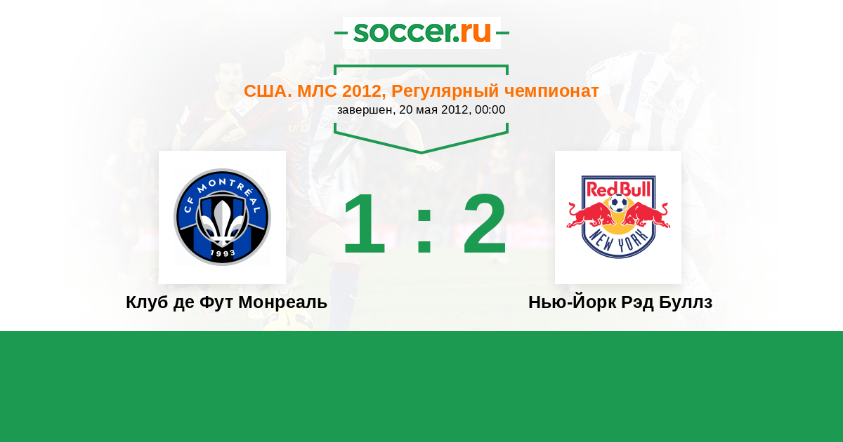США. МЛС 29.07.2012 Клуб де Фут Монреаль Логотип футбольный клуб Клуб де Фут Монреаль 3:1 Логотип футбольный клуб Нью-Йорк Рэд Буллз Нью-Йорк Рэд Буллз