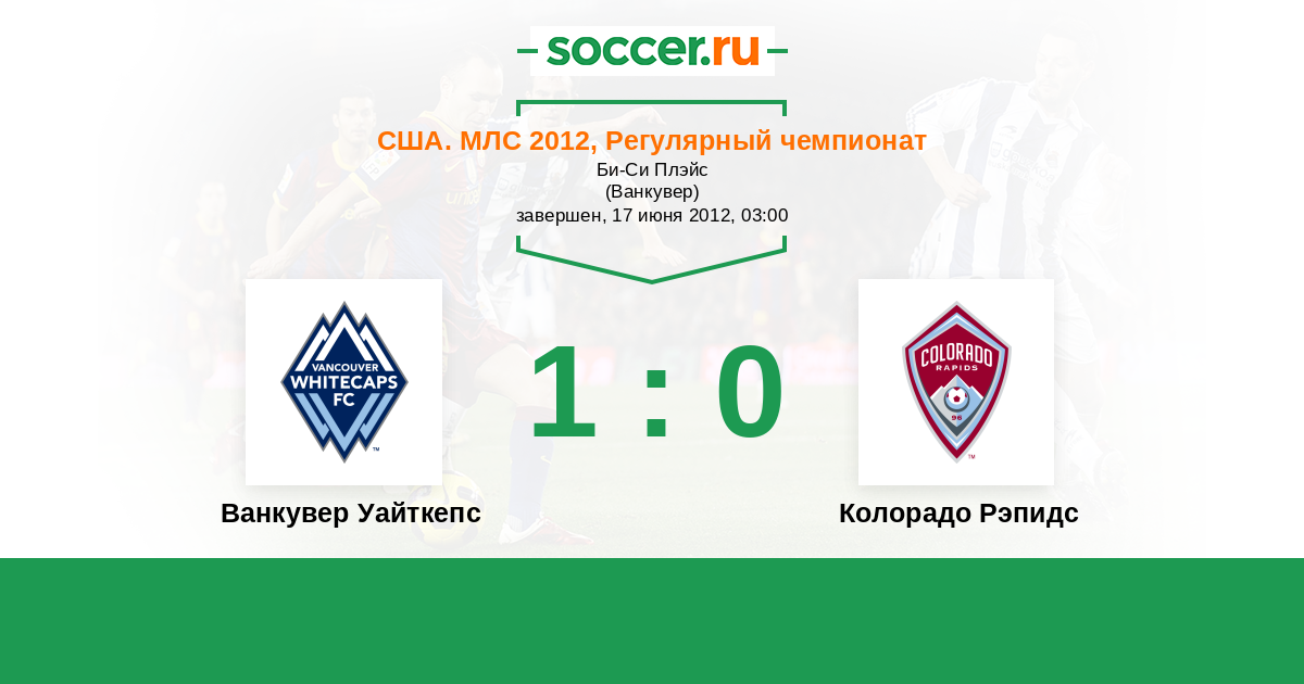 США. МЛС 05.07.2012 Колорадо Рэпидс Логотип футбольный клуб Колорадо Рэпидс (Денвер) 0:1 Логотип футбольный клуб Ванкувер Уайткепс Ванкувер Уайткепс