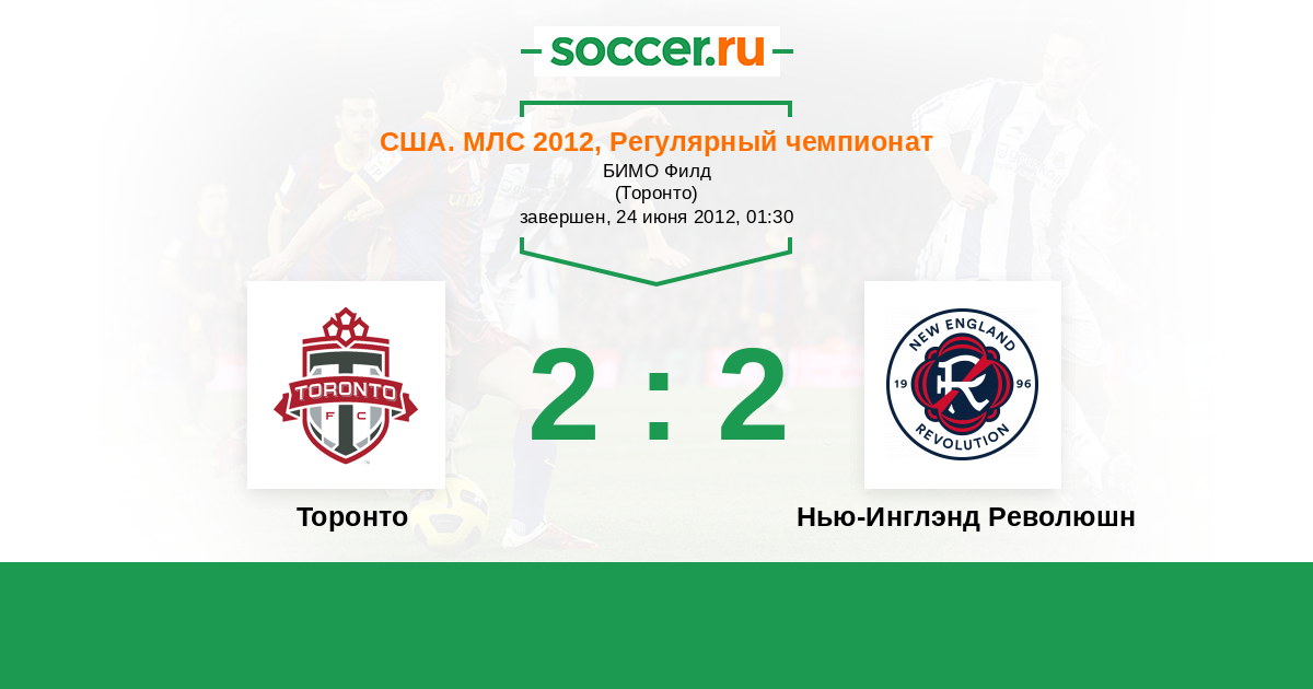 США. МЛС 15.07.2012 Нью-Инглэнд Революшн Логотип футбольный клуб Нью-Инглэнд Революшн (Фоксборо) 0:1 Логотип футбольный клуб Торонто Торонто