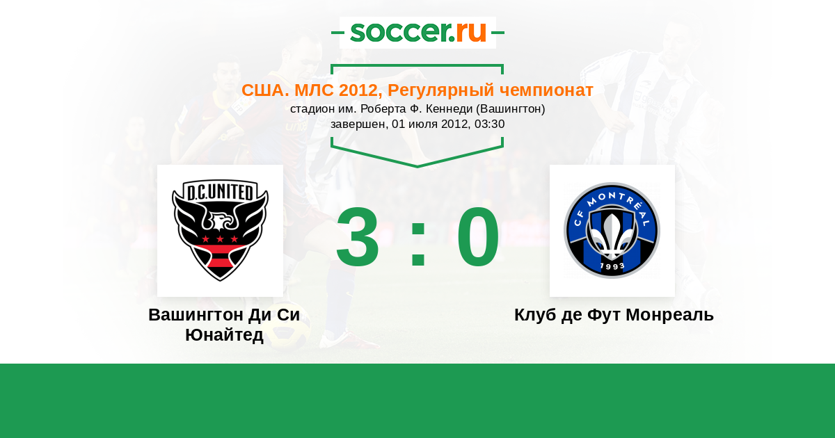 США. МЛС 26.08.2012 Клуб де Фут Монреаль Логотип футбольный клуб Клуб де Фут Монреаль 3:0 Логотип футбольный клуб Вашингтон Ди Си Юнайтед Вашингтон Ди Си Юнайтед