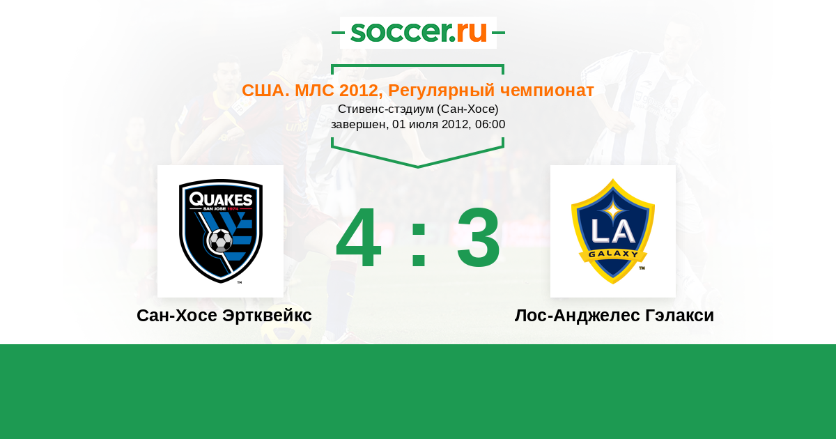 США. МЛС 24.05.2012 Лос-Анджелес Гэлакси Логотип футбольный клуб Лос-Анджелес Гэлакси 2:3 Логотип футбольный клуб Сан-Хосе Эртквейкс Сан-Хосе Эртквейкс