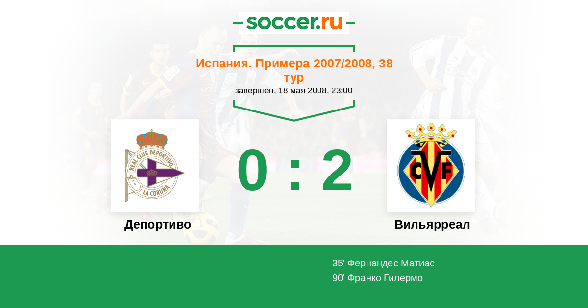 Протокол матча Депортиво против Вильярреал