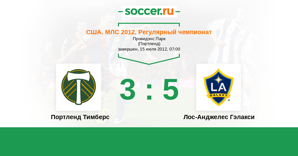 США. МЛС 18.06.2012 Лос-Анджелес Гэлакси Логотип футбольный клуб Лос-Анджелес Гэлакси 1:0 Логотип футбольный клуб Портленд Тимберс Портленд Тимберс