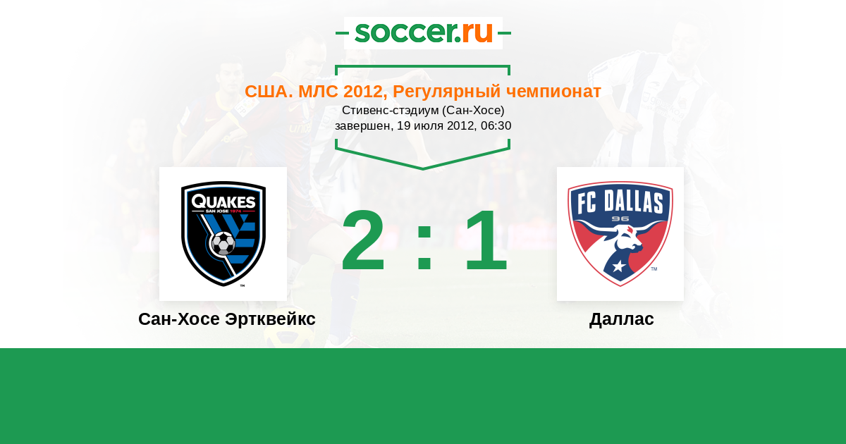 США. МЛС 08.07.2012 Даллас Логотип футбольный клуб Даллас 0:0 Логотип футбольный клуб Сан-Хосе Эртквейкс Сан-Хосе Эртквейкс