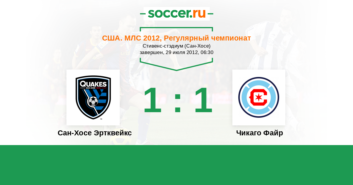 История матча Сан-Хосе Эртквейкс против Чикаго Файр