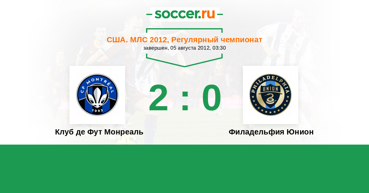 США. МЛС 26.04.2014 Клуб де Фут Монреаль Логотип футбольный клуб Клуб де Фут Монреаль 1:0 Логотип футбольный клуб Филадельфия Юнион Филадельфия Юнион