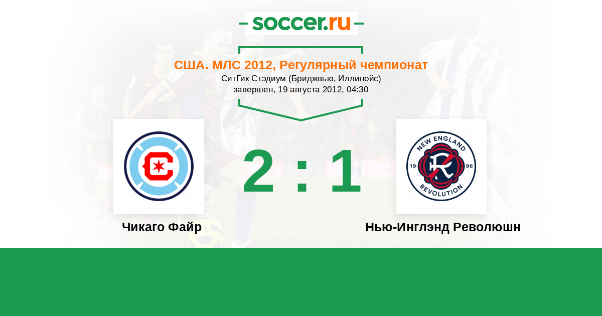 США. МЛС 03.06.2012 Нью-Инглэнд Революшн Логотип футбольный клуб Нью-Инглэнд Революшн (Фоксборо) 2:0 Логотип футбольный клуб Чикаго Файр Чикаго Файр