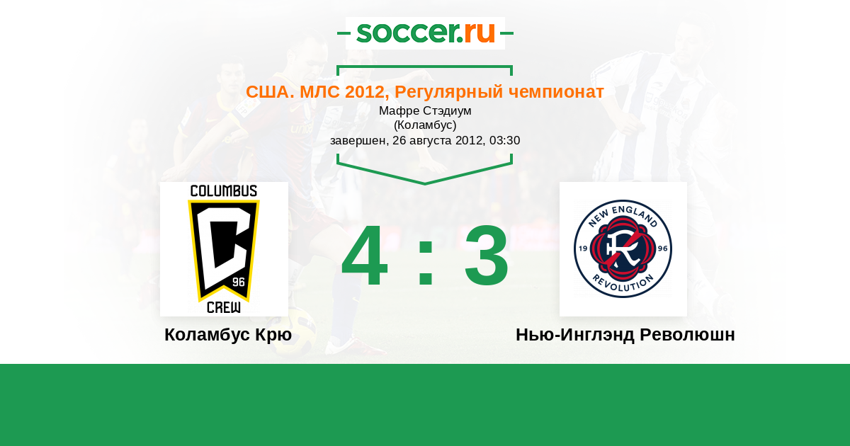 США. МЛС 06.09.2012 Нью-Инглэнд Революшн Логотип футбольный клуб Нью-Инглэнд Революшн (Фоксборо) 2:0 Логотип футбольный клуб Коламбус Крю Коламбус Крю
