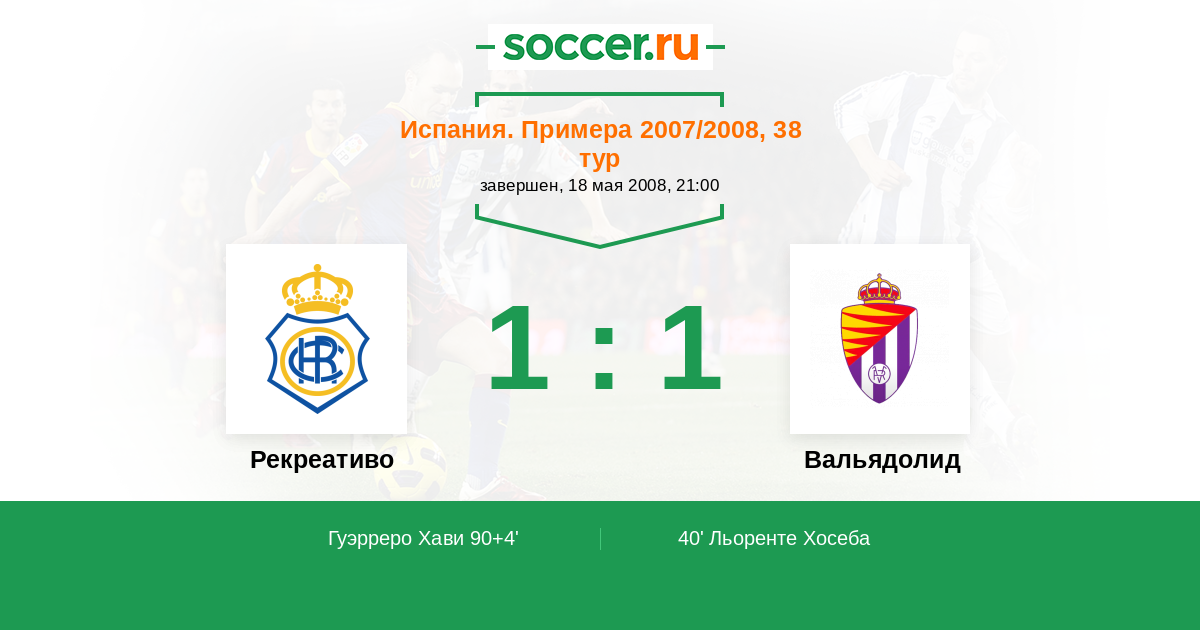 Протокол матча Рекреативо против Вальядолид