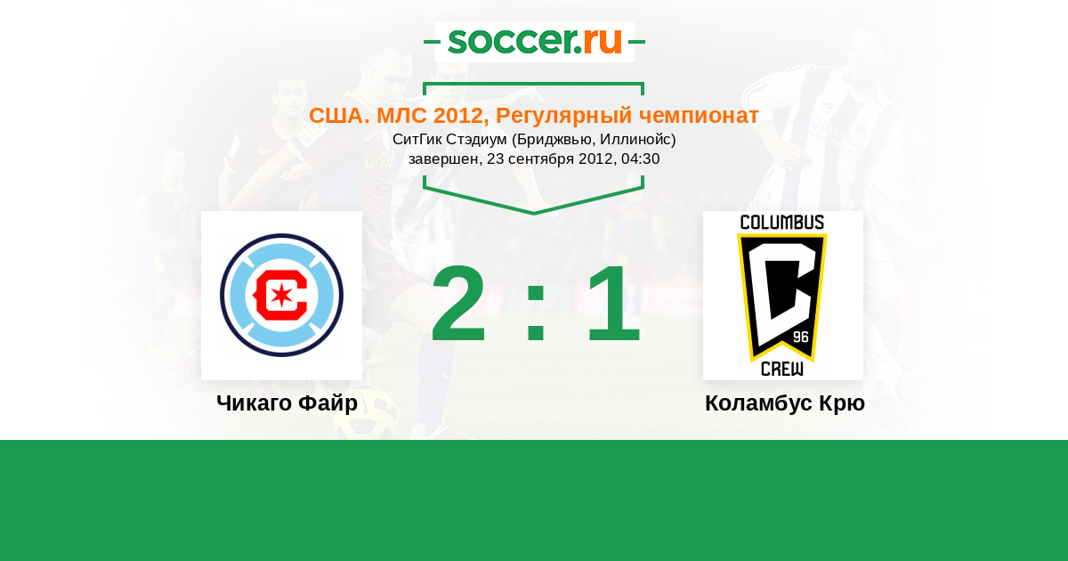 США. МЛС 27.05.2012 Коламбус Крю Логотип футбольный клуб Коламбус Крю 2:1 Логотип футбольный клуб Чикаго Файр Чикаго Файр