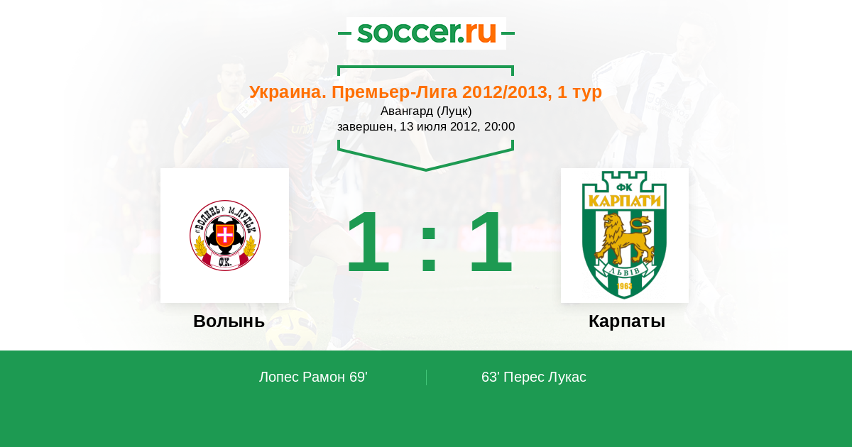 Протокол матча Волынь против Карпаты