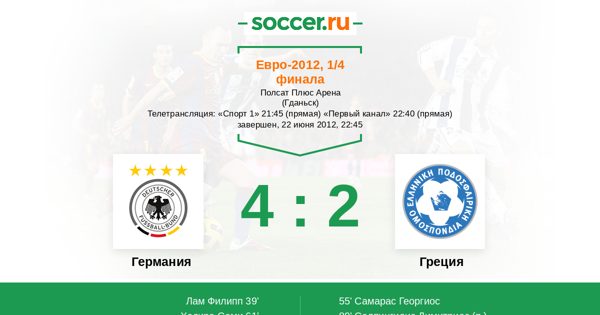Протокол матча Германия против Греция