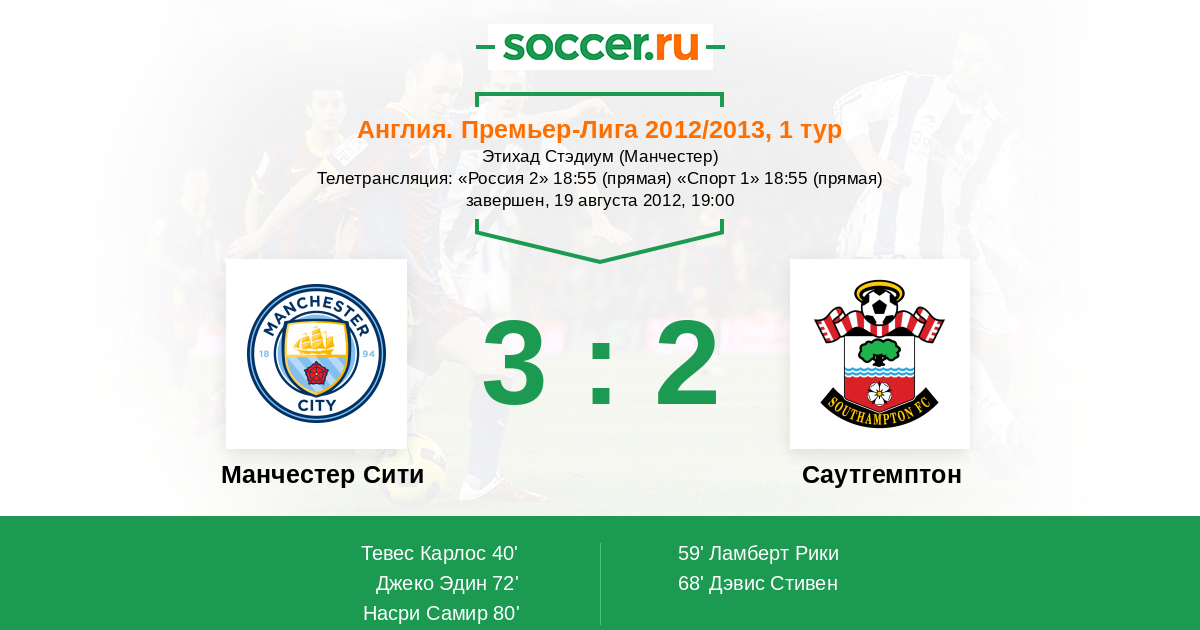 40' (1:0) Тевес Карлос (32) (Насри Самир (8))
