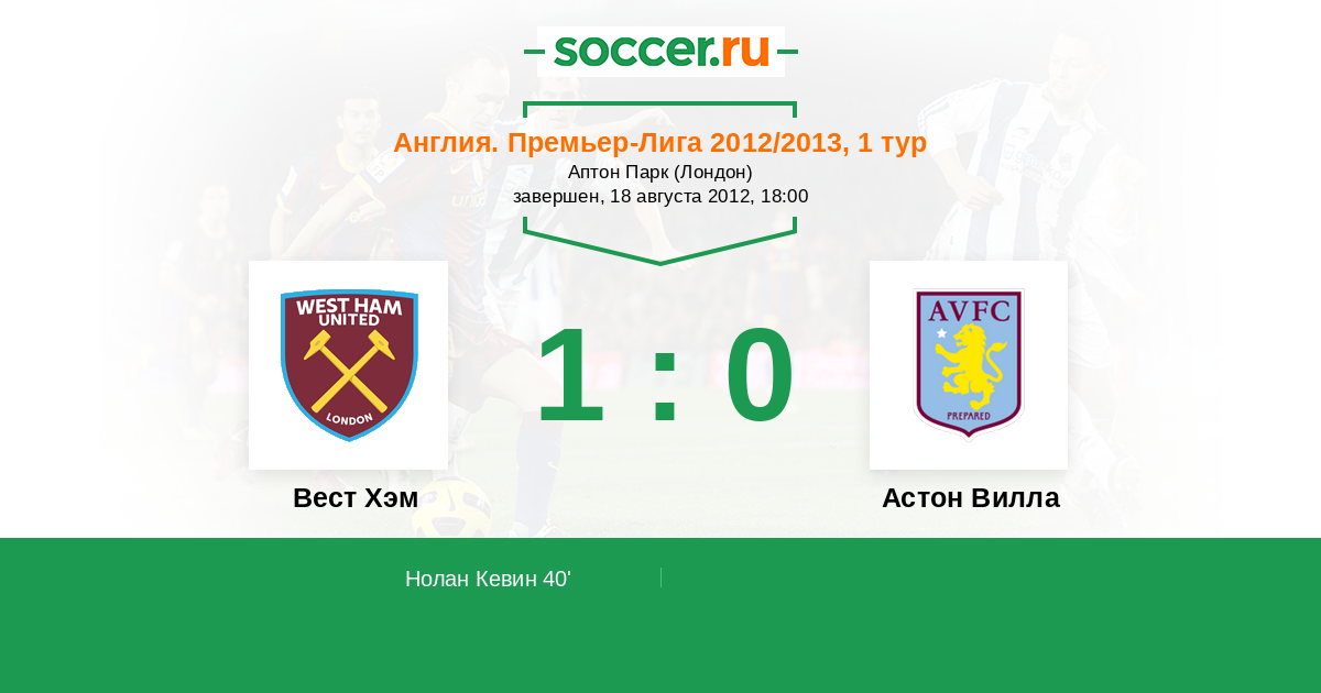 Протокол матча Вест Хэм против Астон Вилла