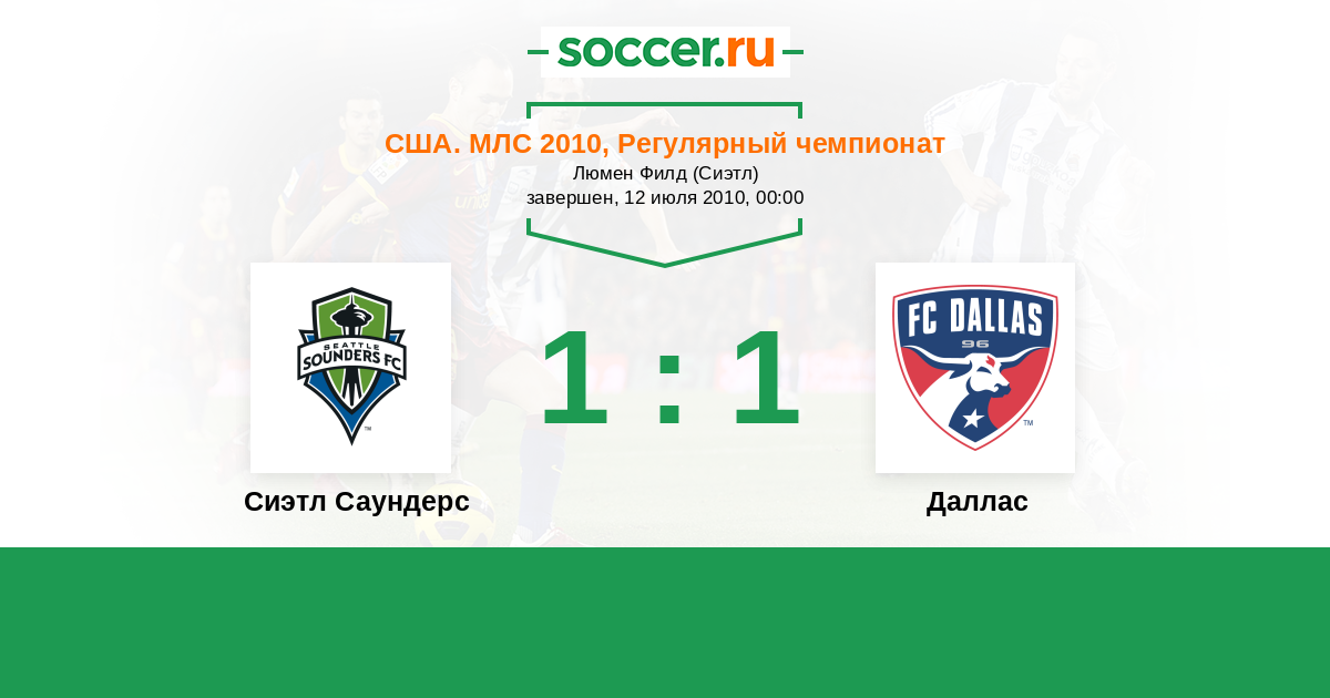 США. МЛС 23.04.2010 Даллас Логотип футбольный клуб Даллас 2:2 Логотип футбольный клуб Сиэтл Саундерс Сиэтл Саундерс