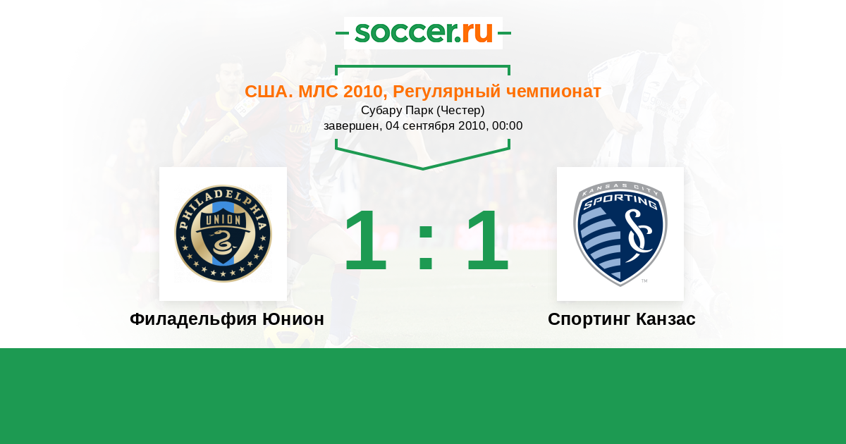 США. МЛС 11.06.2010 Спортинг Канзас Логотип футбольный клуб Спортинг Канзас (Канзас-Сити) 2:0 Логотип футбольный клуб Филадельфия Юнион Филадельфия Юнион