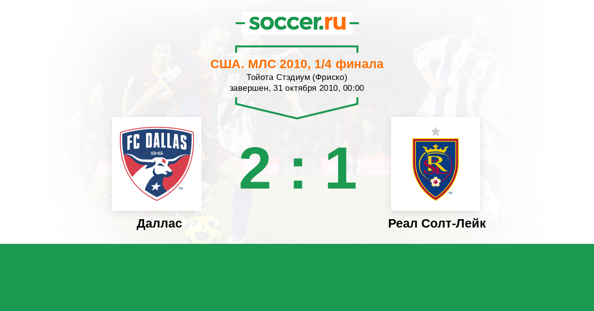 США. МЛС 17.10.2010 Реал Солт-Лейк Логотип футбольный клуб Реал Солт-Лейк (Солт-Лейк-Сити) 2:0 Логотип футбольный клуб Даллас Даллас