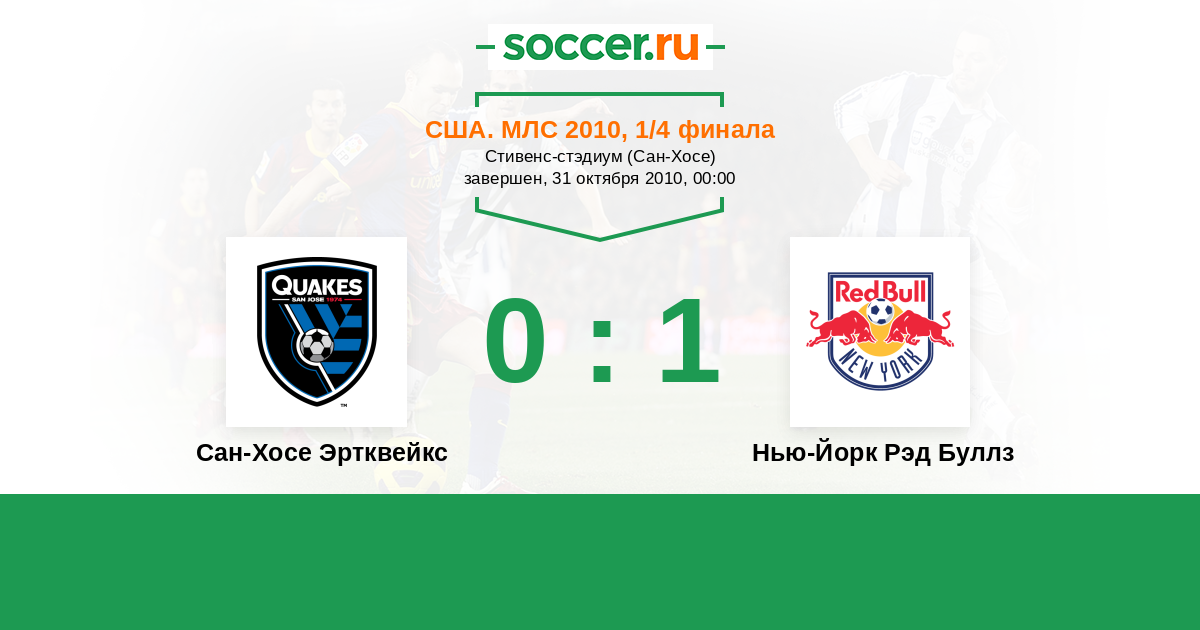 США. МЛС 29.08.2010 Нью-Йорк Рэд Буллз Логотип футбольный клуб Нью-Йорк Рэд Буллз 2:0 Логотип футбольный клуб Сан-Хосе Эртквейкс Сан-Хосе Эртквейкс