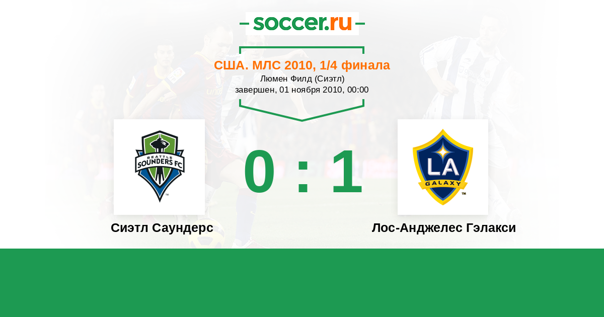 США. МЛС 08.05.2010 Сиэтл Саундерс Логотип футбольный клуб Сиэтл Саундерс 0:4 Логотип футбольный клуб Лос-Анджелес Гэлакси Лос-Анджелес Гэлакси