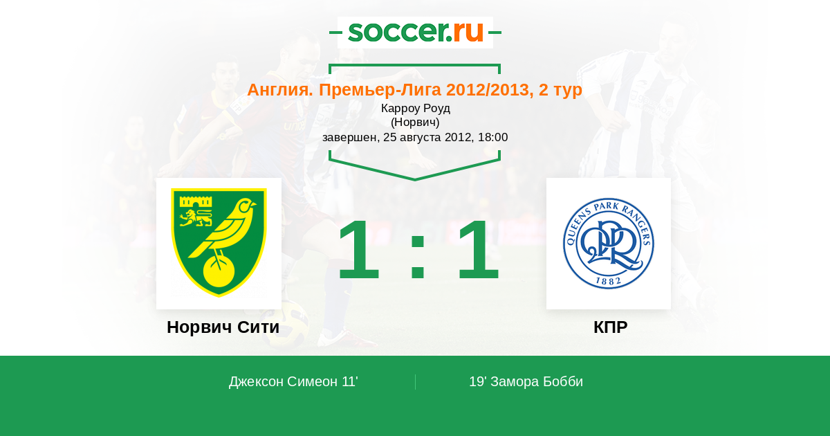 Протокол матча Норвич Сити против КПР