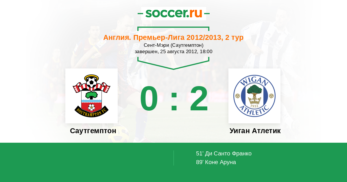 Протокол матча Саутгемптон против Уиган Атлетик