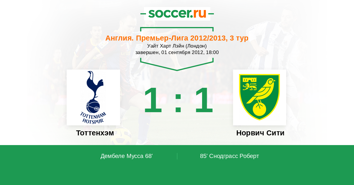 Протокол матча Тоттенхэм против Норвич Сити