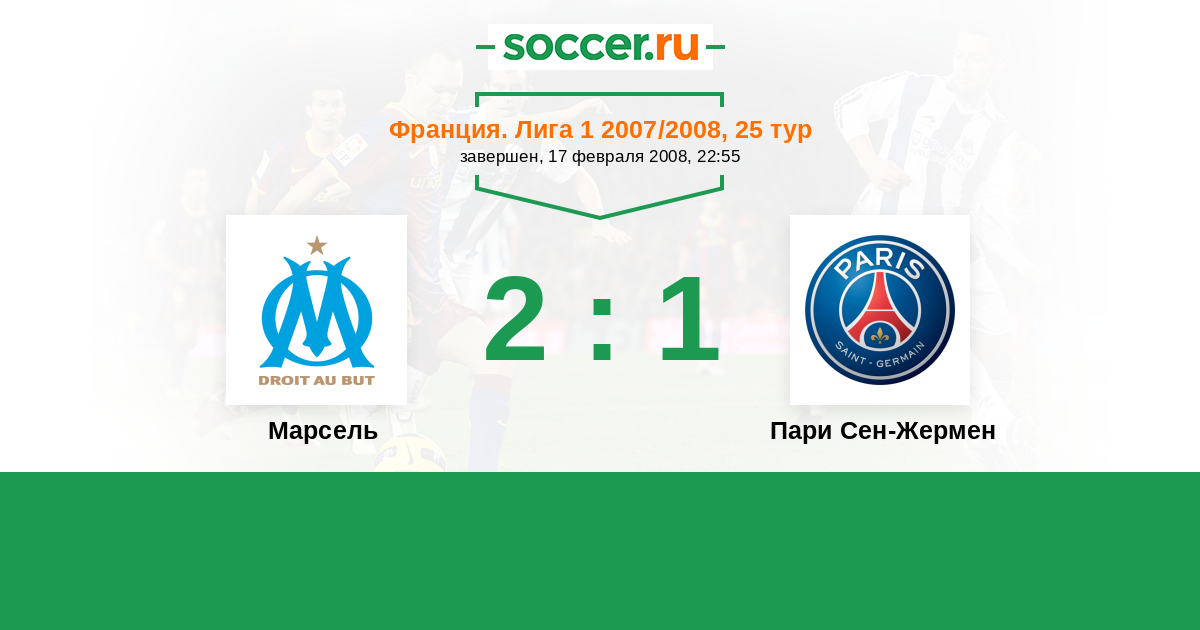 Протокол матча Марсель против Пари Сен-Жермен