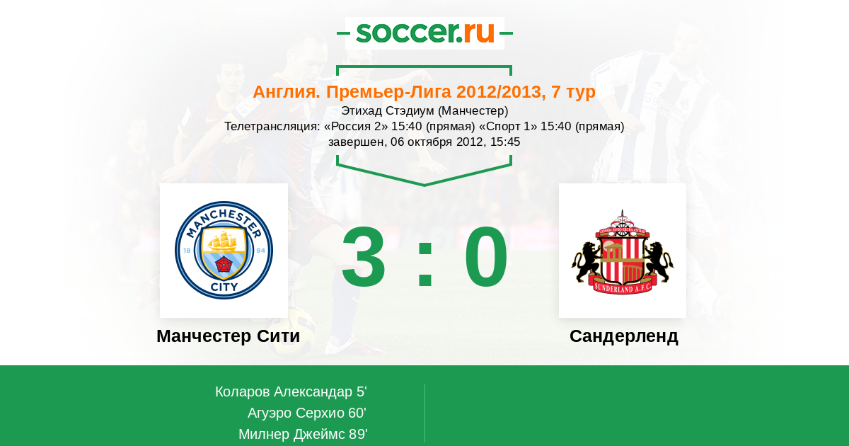 Протокол матча Манчестер Сити против Сандерленд