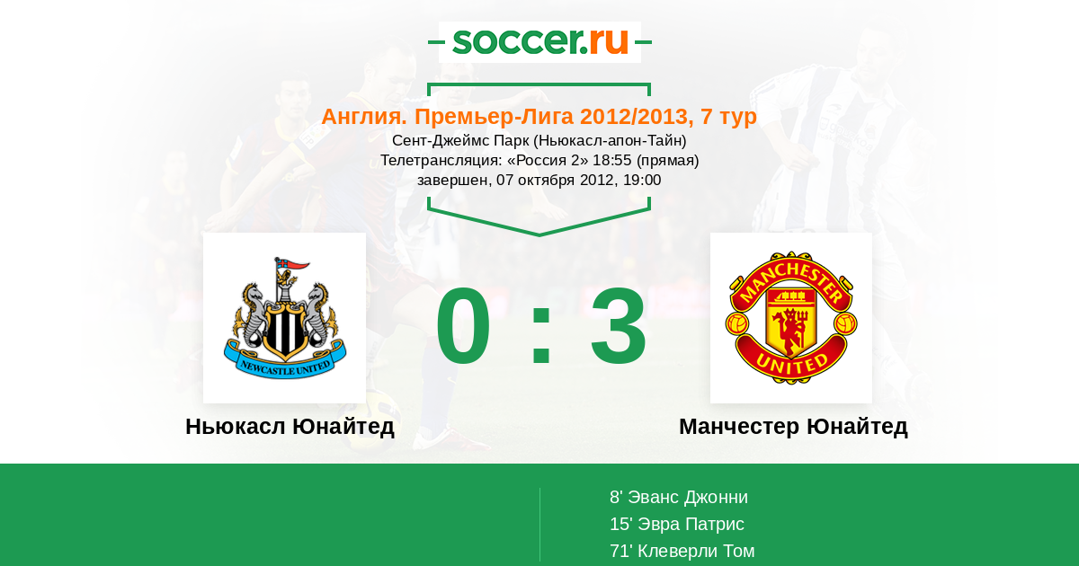 Протокол матча Ньюкасл Юнайтед против Манчестер Юнайтед