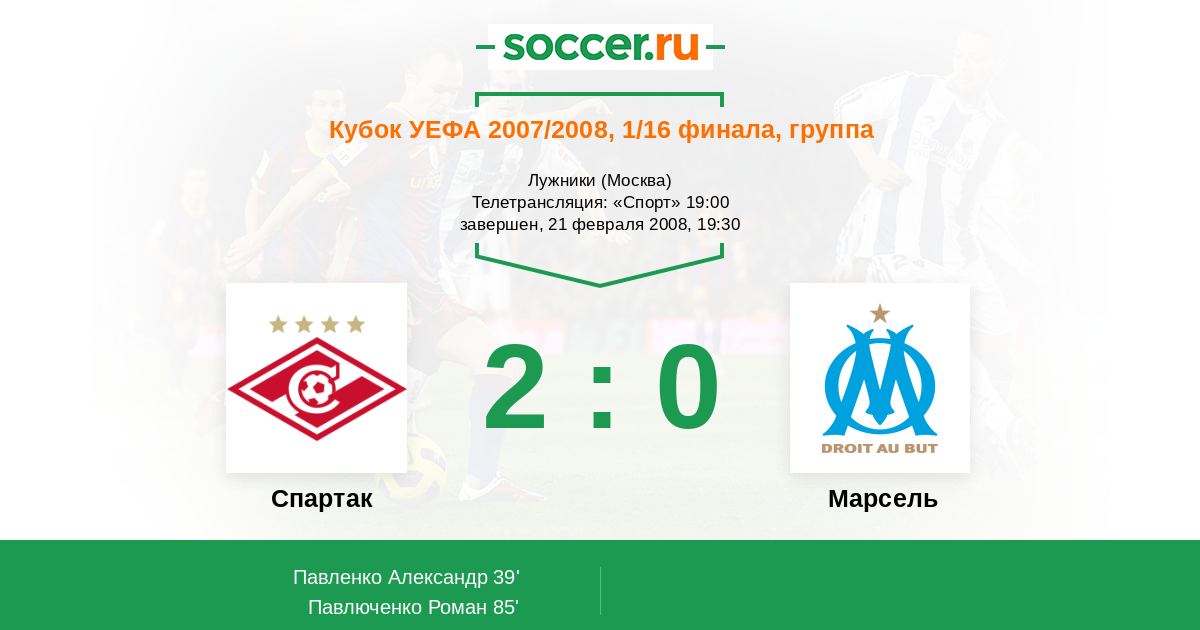 Протокол матча Спартак против Марсель